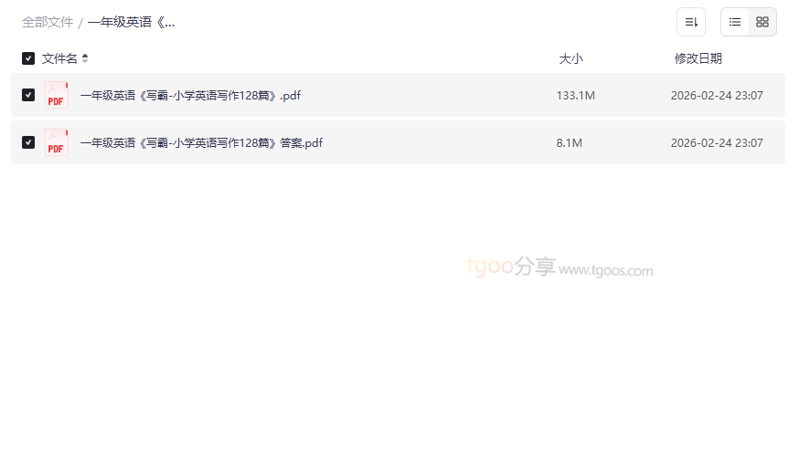 对于刚刚接触英语学习的一年级小朋友来说,如何迈出英语写作的第一步,是许多家长和老师关注的焦点。传统的英语学习往往侧重于听、说、读,而“写”的专项训练资源相对匮乏。本资源《写霸-小学英语写作128篇》正是针对这一痛点,为小学一年级学生量身打造的英语写作启蒙专项训练宝典。它通过128篇由浅入深的趣味写作练习,系统性地引导孩子从字母、单词到简单句子的书写与表达,有效填补了低龄段英语写作教学的空白。这份高清PDF电子版资源,不仅包含了完整的练习册,还附带了详细的参考答案,是家庭辅导和课后巩固的得力助手,尤其适合: