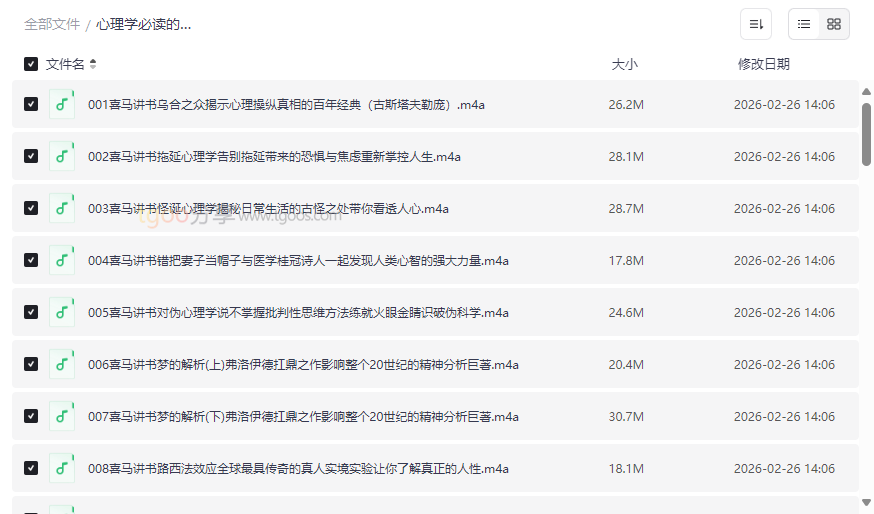 无论你是想深入了解人性奥秘,还是寻求解决实际生活困境的智慧,这份 高质量的心理学音频资源合集 都能为你提供一座随时可访问的“移动心理图书馆”。