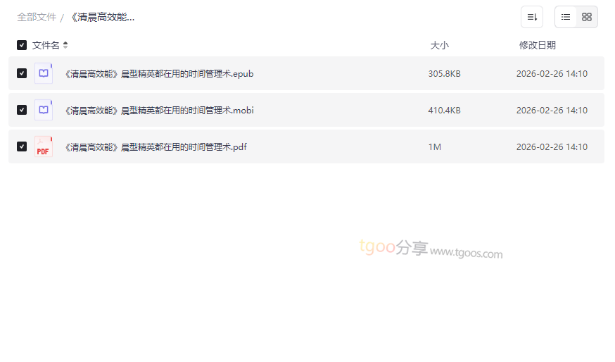 资源地址:《清晨高效能:晨型精英时间管理术》EPUB/MOBI/PDF三格式电子书网盘下载