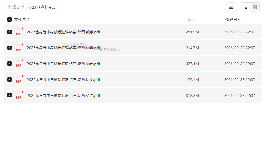 备战中考,真题演练是决胜的关键一步。这份 《2025金考卷中考试卷汇编45套(陕西)》 资源,精准聚焦陕西省中考命题趋势,为初中生提供了语文、数学、英语、物理、化学五大核心科目的海量实战题库。本资源集合了 最新版模拟卷、历年真题汇编及权威答案解析,旨在通过系统性的刷题训练,帮助学生熟悉题型、把握考点、提升应试能力。这套资源是冲刺阶段查漏补缺、模拟实战的“利器”,尤其适合: