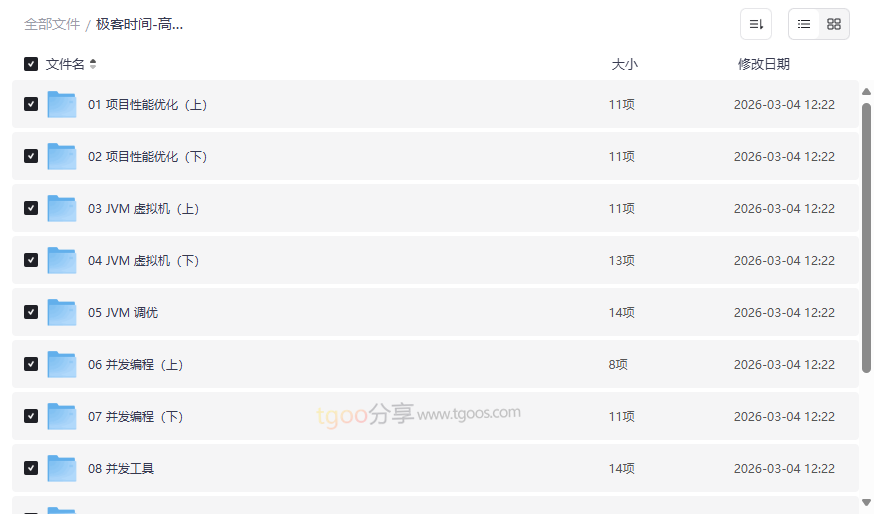 在当今技术快速迭代的时代,Java工程师的成长之路充满挑战,从掌握基础语法到应对高并发、高可用系统的性能瓶颈,每一步都需要系统性的知识体系和实战经验。这份 《极客时间-高级Java工程师》 课程资源,正是为渴望突破技术瓶颈、向资深专家迈进的中高级开发者量身打造的深度进阶指南。本资源集合了 项目性能优化、JVM虚拟机深度剖析、并发编程精髓、网络编程实战 四大核心模块,通过理论结合大量案例,直击生产环境中的复杂问题。它尤其适合: