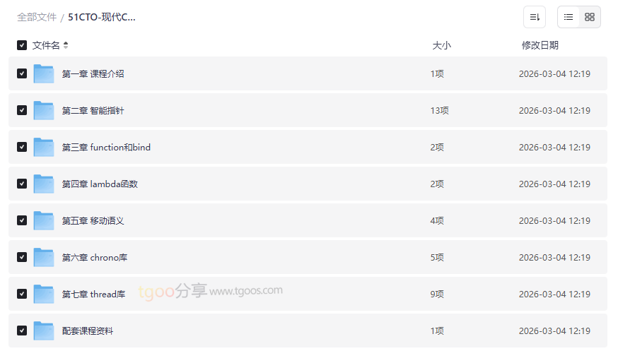 无论你是希望告别裸指针的内存泄漏困扰,还是想编写高效、安全的并发代码,这套涵盖智能指针详解、lambda表达式、function/bind、chrono时间库及thread多线程库的完整课程,都将是你不可或缺的C++11学习宝典。
