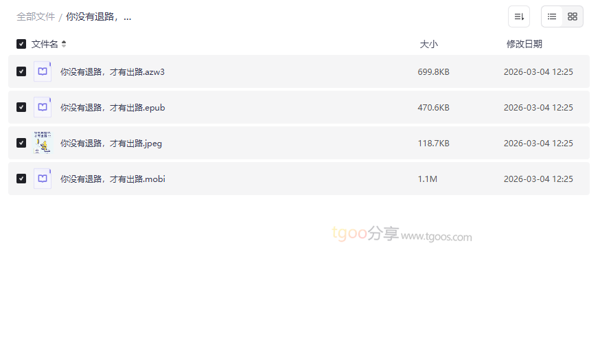 资源地址:《你没有退路,才有出路》电子书全格式下载(AZW3/EPUB/MOBI+封面)