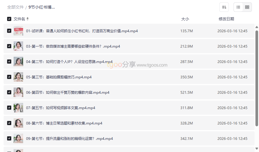 资源地址:《小红书博主实战课》厦九九亲授9节直播课网盘资源下载
