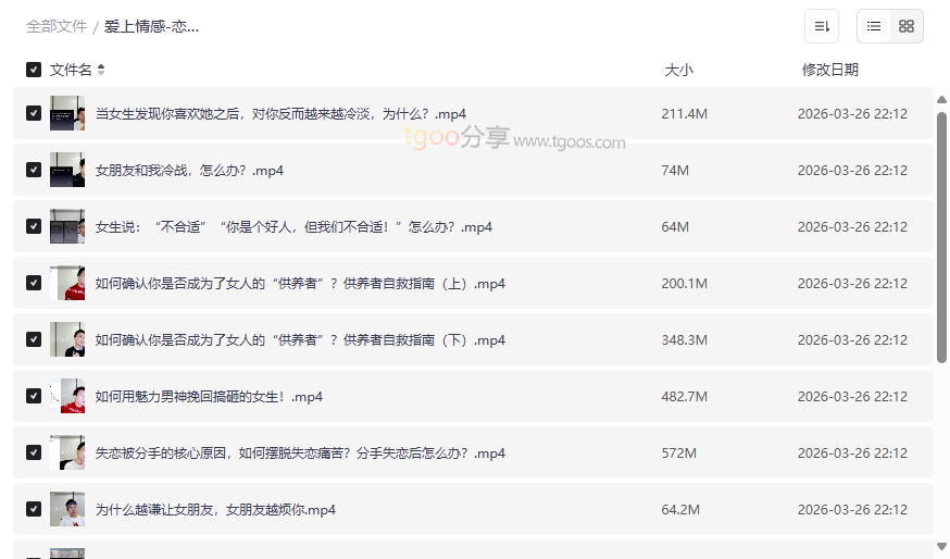 进入恋爱关系后,挑战并未结束。资源深入探讨了恋爱中的权力动态与相处模式。例如,《为什么越谦让女朋友,女朋友越烦你》揭示了无原则妥协对吸引力的损害;《女朋友和我冷战,怎么办?》则给出了打破僵局的具体步骤。最具价值的莫过于对“供养者”角色的深度剖析(上下两集),这是一份珍贵的“供养者自救指南”,帮助男性识别并跳出单纯物质付出的陷阱,转向建立情感与魅力的吸引。