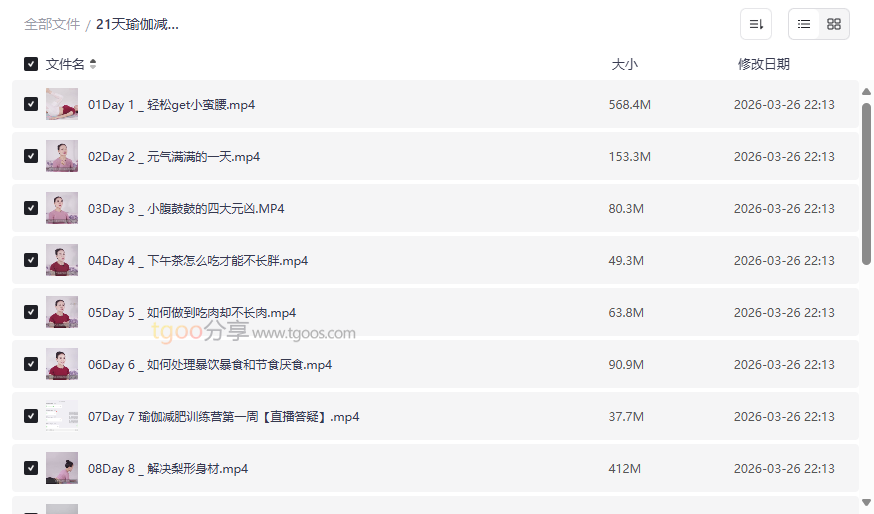 21天瑜伽减肥训练营资源目录
