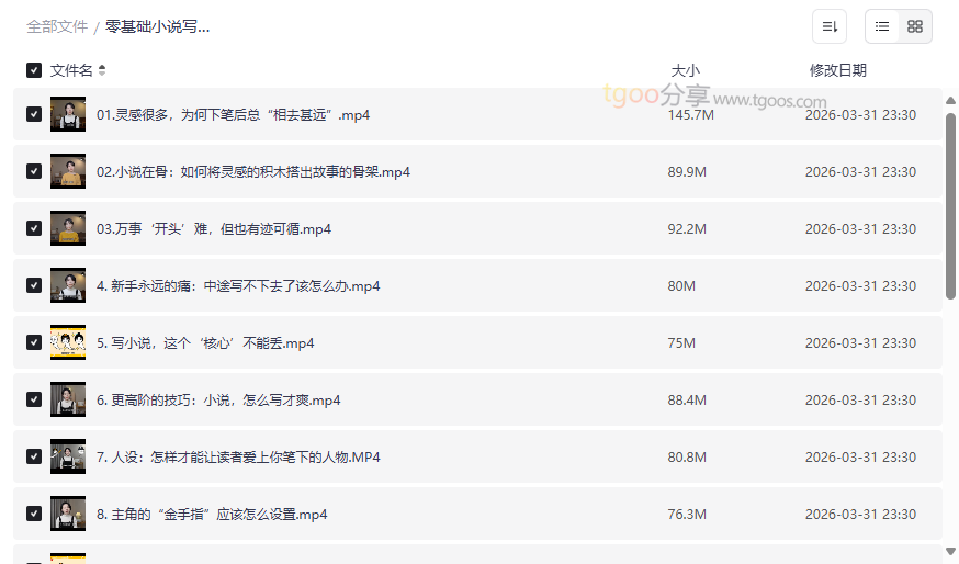 资源地址:《零基础小说写作必修课》网盘资源下载:故事创作+视频小说+IP打造全指南