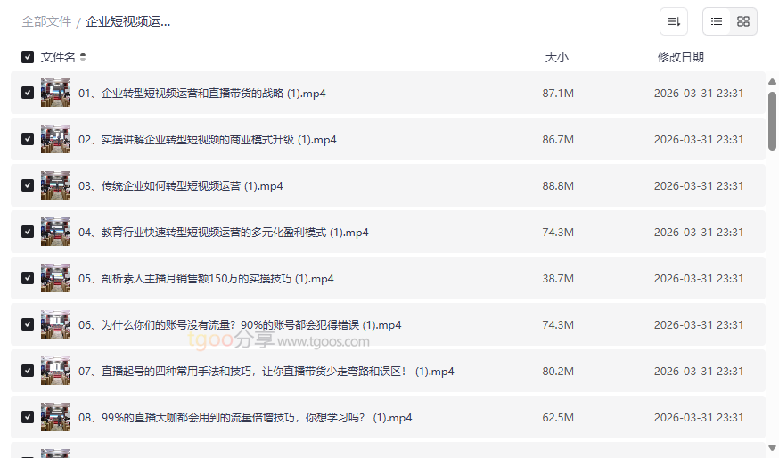 资源地址:《企业短视频运营与直播带货实战必修课》49节高清视频网盘资源下载