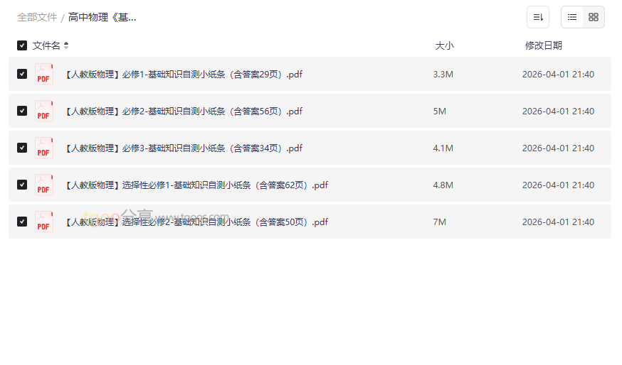 资源地址:高中物理《基础知识自测小纸条》全五册(25版)网盘下载,高考复习查漏补缺神器