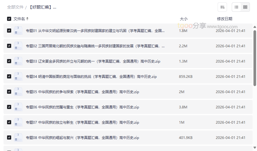 备战2026年高中历史学业水平合格考真题分类汇编资源目录