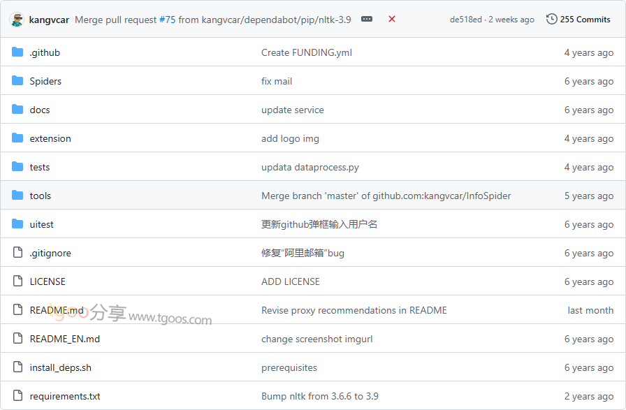 InfoSpider项目目录截图