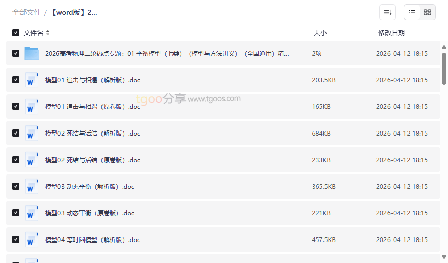 2026高考物理二轮热点模型资源截图展示