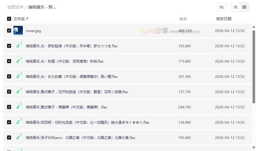 瑞鸣音乐《那些年我们唱过的日本歌(二)》资源目录