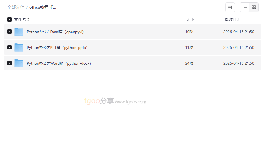 Python办公自动化教程资源目录
