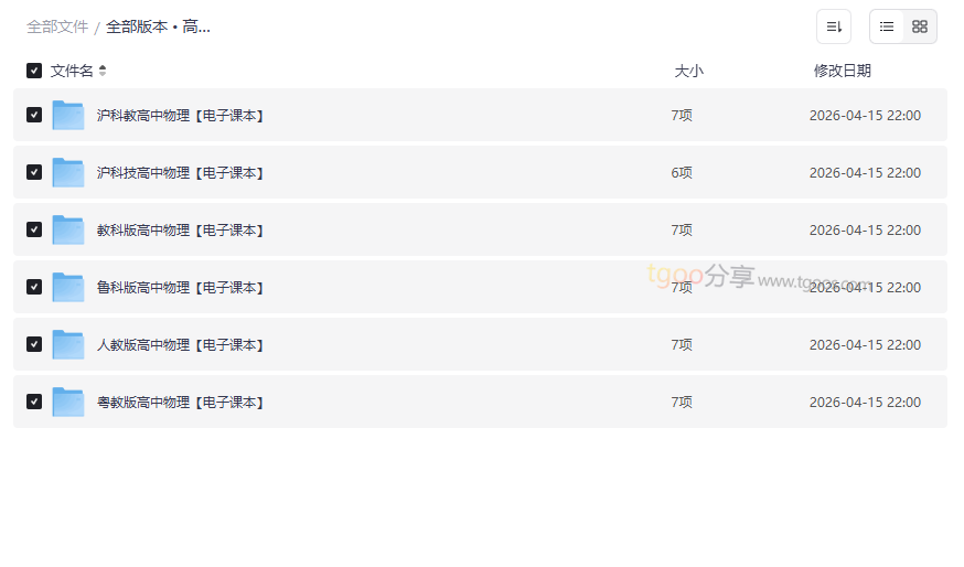 高中物理是理科学习的重要基石,但由于教材版本众多,不同地区、不同学校使用的课本各异,常常给学生的预习、复习和跨区域学习带来不便。本资源库精心整理了全国主流六大版本的高中物理电子课本,包括人教版、沪科教版、沪科技版、教科版、鲁科版、粤教版,覆盖必修与选修全系列,均为高清PDF格式,实现了物理学习资源的“一站式”集齐。这套高中物理电子课本合集的价值在于打破了版本壁垒,为不同需求的学习者提供了前所未有的便利,无论是应对日常学习、备战高考,还是进行教学研究,都能从中找到最匹配的教材支持。本高质量网盘资源尤其适合: