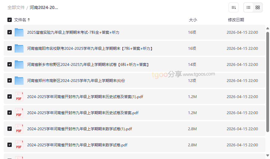 备战中考,精准演练是关键。这份 《河南2024-2025学年【名校期末考】合集》 网盘资源,精心收录了河南省内多个教育强市、顶尖名校的九年级上学期期末考试真题。资源涵盖语文、数学、英语、物理、化学、道法、历史等全科试卷,并附有标准答案及英语听力音频,是九年级学生进行期末复习、查漏补缺、模拟中考的权威备考资料库。本资源集合了开封市、河南省实验中学、南阳市名校联考、新乡市牧野区、郑州市高新区等地的真题,价值极高,适合: