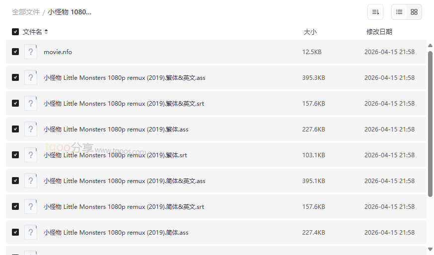 资源地址:《小怪物 (2019)》1080p Remux 蓝光原盘 多字幕收藏版网盘下载