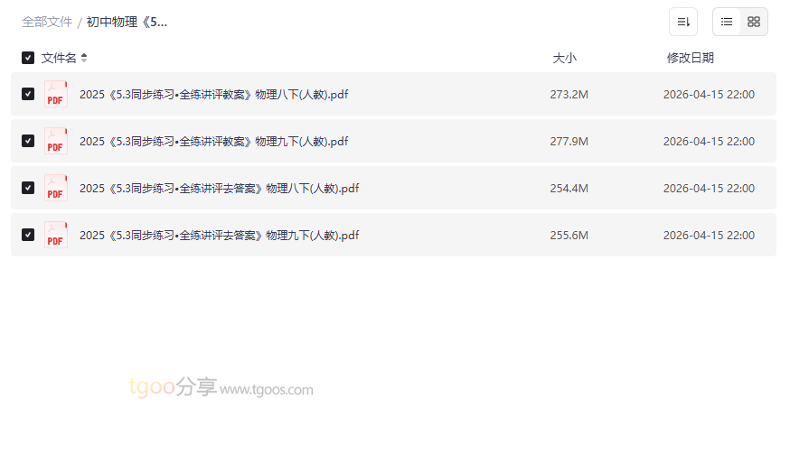 对于广大初中生而言,物理学科既是探索自然奥秘的钥匙,也是升学路上的关键一环。为了帮助同学们高效巩固课堂所学、精准备战考试,我们精心整理了这份 《5年中考3年模拟》系列中的核心产品——初中物理《53同步练习•全练》2025版 电子资源。本资源集合了 最新2025版八、九年级下册的同步练习册、配套讲评教案以及去答案版练习册,实现了“学-练-测-评”的完整闭环。这套由权威教育品牌“曲一线”出品的经典教辅,以其科学的编排和紧贴中考的命题方向,成为无数师生信赖的备考利器。它尤其适合: