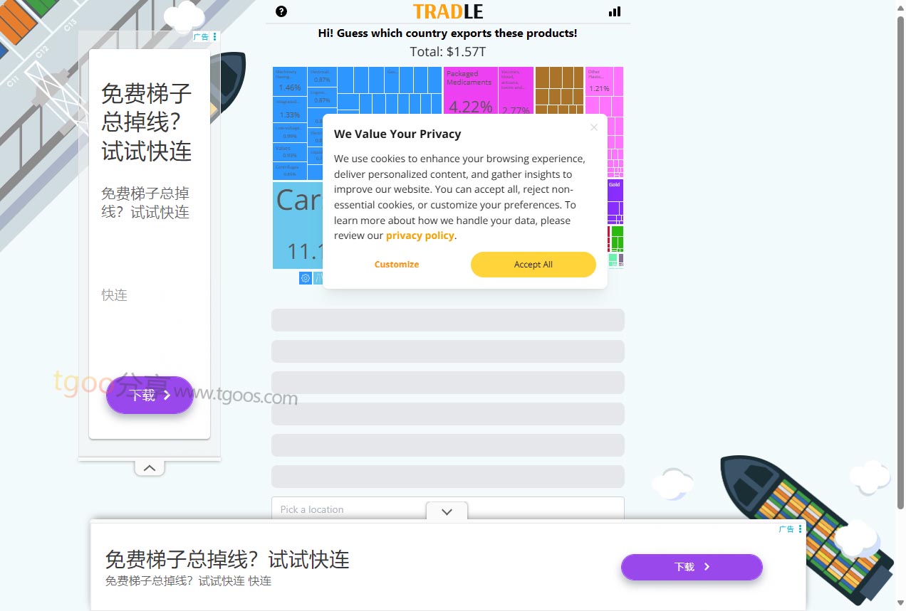 OEC Tradle是一个由Observatory of Economic Complexity(经济复杂性观察站)推出的教育类互动游戏平台,专注于通过趣味游戏方式帮助用户了解世界各国的主要出口商品与经济结构。该游戏以猜谜形式呈现,玩家需要根据每日提示猜测特定国家的出口商品,在娱乐中学习全球经济贸易知识。据公开信息,Tradle适合学生、教师、经济学爱好者以及对国际贸易感兴趣的用户,能够有效提升对各国经济特点与全球贸易网络的认知。游戏完全免费,无需注册即可在线参与,支持英文界面,全球用户均可直接访问。与传统枯燥的经济学习方式相比,Tradle通过游戏化设计将复杂的经济数据转化为轻松有趣的互动体验,是寓教于乐的优秀范例。