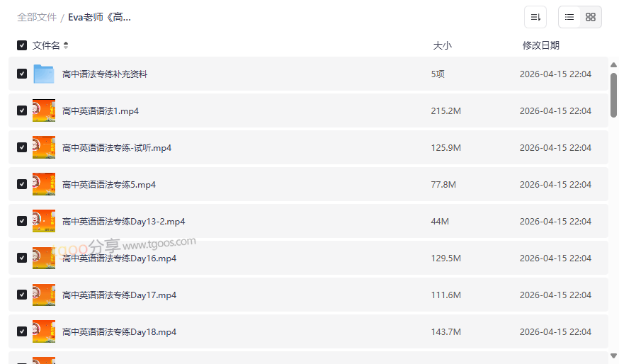 这是本资源的核心价值所在。课程采用“Day-by-Day”的进阶模式,从基础语法概念到高考高频难点,循序渐进。每个视频(如Day13, Day60, Day150等)都针对特定语法点进行集中训练和讲解,避免了学习的盲目性。- 亮点一:名师精讲,直击要害:Eva老师的讲解逻辑清晰,善于总结规律和解题技巧,能帮助学生跳出题海,掌握本质。