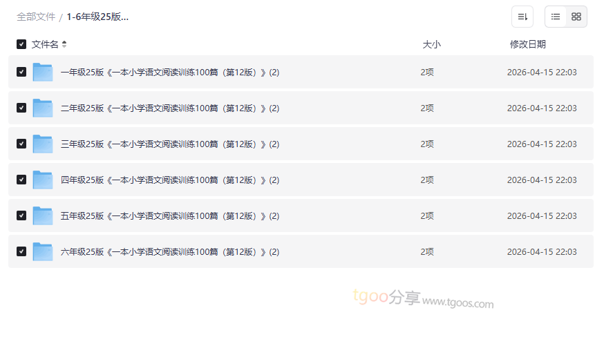 这是资源的主体部分,每个年级一本独立的《训练100篇》PDF。其最大亮点在于 “循序渐进”与“贴合课标” 。从一年级的短篇拼音阅读,到六年级的复杂叙事文、说明文、文言文阅读,难度梯度设计科学。每篇文章都配有精心设计的习题,涵盖字词理解、句子分析、内容概括、主旨把握、情感体会等多元题型,全方位锻炼孩子的阅读理解能力。拥有这套资源,相当于为孩子配备了小学六年的个性化阅读训练私教。 - 配套答案解析详解(每年级独立配备)