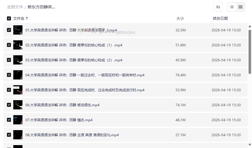 无论你是为了短期冲刺考试,还是为了长期提升英语实力,这份高质量、体系化的语法视频资源都能为你提供强有力的支持,是英语学习路上不可多得的“语法宝典”。