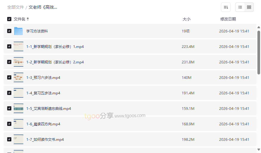 这是课程的灵魂所在,文老师通过视频直观演示,将复杂的学习过程拆解为简单步骤。课程设计覆盖了学习全流程,从宏观规划到微观技巧,形成完整闭环。- 学习规划与习惯养成:开篇的“新学期规划(家长必修)”两课,指导家长如何成为孩子的“战略教练”,而非“监工”。针对“拖拉磨蹭”等具体痛点,提供了切实的解决方案。