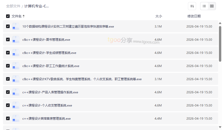 这是资源包的核心部分,包含了多个使用C/C++语言开发的经典管理系统。这些项目覆盖了学生、职工、图书、产品、KTV、客房、财务等常见业务场景,系统功能完整,通常包含增删改查、统计报表等模块。