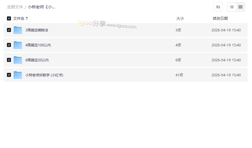 在孩子的数学启蒙与基础巩固阶段,一套系统、有趣且高效的小学数学课程至关重要。小树老师作为深受家长信赖的数学启蒙专家,其课程合集以其清晰的逻辑、生动的讲解和实用的方法而闻名。本资源集合了 《3周搞定乘除法》、《4周搞定100以内》、《6周搞定20以内》三大核心计算专项训练,以及涵盖数感启蒙、思维游戏、习惯培养、教辅解析等丰富内容的“小红书”系列视频。这套高质量网盘资源将枯燥的数学知识转化为孩子乐于接受的游戏和挑战,旨在帮助孩子夯实计算基础、建立数学思维、培养良好学习习惯,适合: