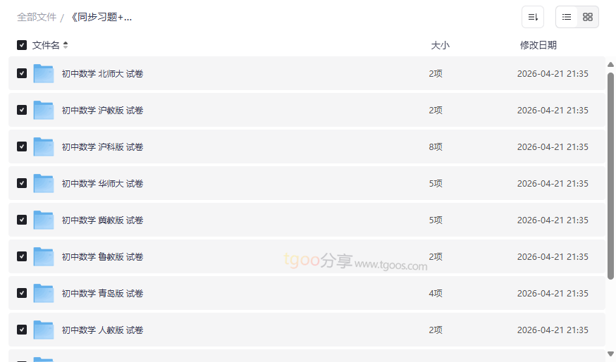 对于初中生而言,数学是拉开分数差距的关键学科,而高效、精准的练习是巩固知识、提升能力的核心路径。本资源《同步习题+精品试卷》初中数学刷题资料合集,堪称一份覆盖全国主流教材版本、体系化、分层级的数学题库宝典。它不仅仅是一堆试卷的堆砌,而是根据北师大、沪教版、人教版、浙教版等十余种教材版本,系统整合了从同步基础、单元检测到拔高提优、中考冲刺的全方位练习资源。无论你的目标是夯实基础、查漏补缺,还是冲击高分、挑战压轴题,这份高质量网盘资源合集都能提供强有力的支持。