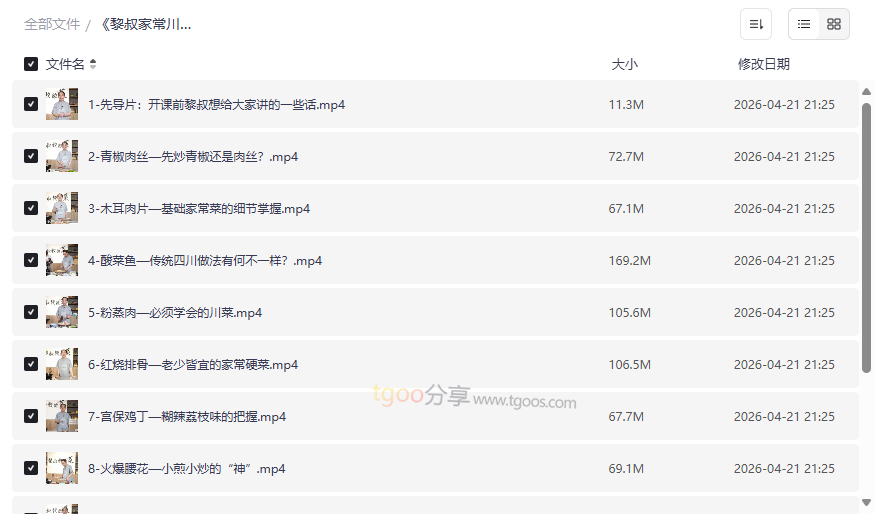 资源地址:《黎叔家常川菜私教课》高清视频教程网盘资源下载,12道经典菜从入门到精通