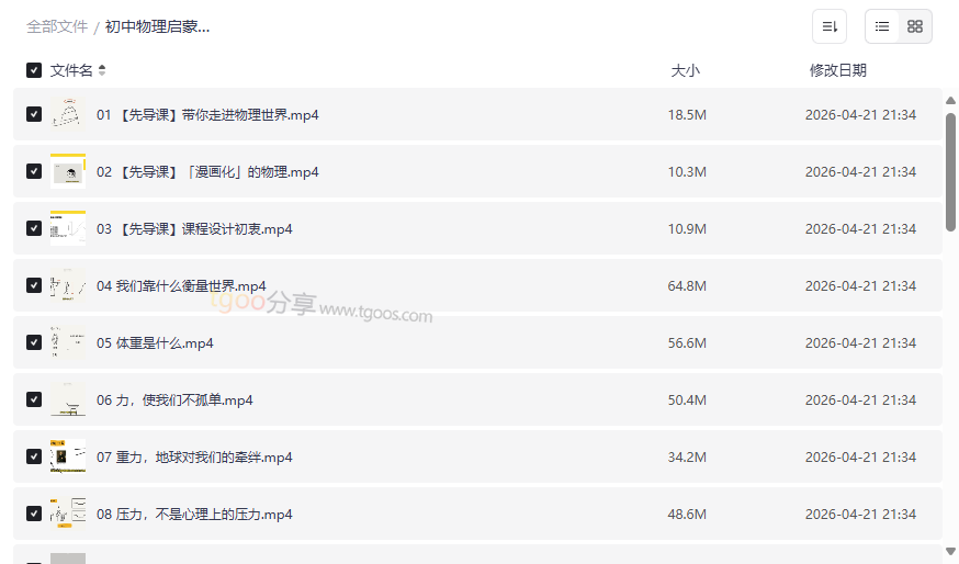 对于许多初中生而言,物理是一门既神秘又充满挑战的学科,抽象的公式和概念常常成为学习路上的“拦路虎”。本资源《没有公式的物理课》正是为了打破这一困境而生,它是一套颠覆传统、生动有趣的物理启蒙视频课程。课程核心在于“去公式化”,通过 生活化的场景、漫画式的讲解、故事化的叙述,将力学、声学、光学、热学、电学乃至宇宙探索等物理知识娓娓道来,并附有详尽的答案之书作为学习辅助。这套资源旨在点燃学习兴趣,构建直观的物理图景,是告别死记硬背、开启科学思维的绝佳钥匙。它非常适合: