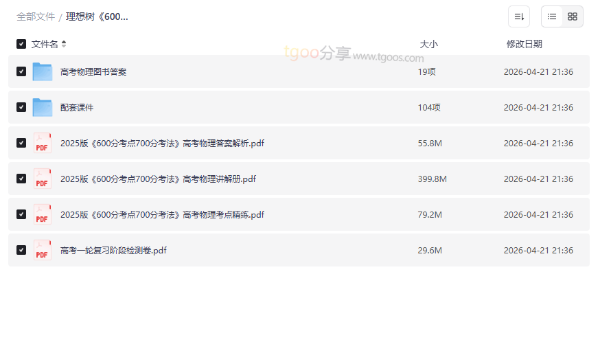理想树《600分考法700分·高考物理 (2025版)》资源目录