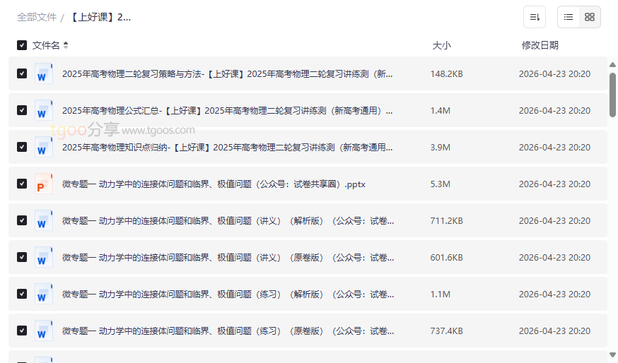 备战2026年高考物理,时间紧迫,考点繁杂,一套系统、精准的复习资料是决胜关键。这份【上好课】2026年高考物理二轮复习讲练测(新高考通用)网盘资源合集,直击高考核心,专为新高考考生量身打造。它整合了2025年高考物理的最新高考试题分析、复习策略与精华知识点,将庞杂的物理体系拆解为18个专题和多个微专题,从力与物体的平衡到近代物理,实现考点全覆盖。无论你是想要巩固基础、突破难点,还是进行考前冲刺、查漏补缺,这份高考物理复习资料都能为你提供最有力的支持。