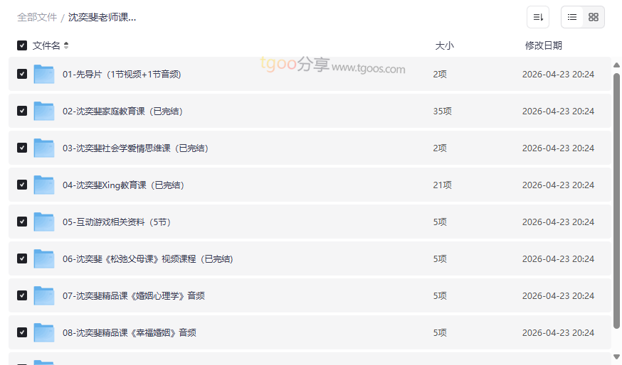 资源地址:《沈奕斐老师课程合集》全系列网盘资源免费下载 | 家庭教育、爱情思维、婚姻心理