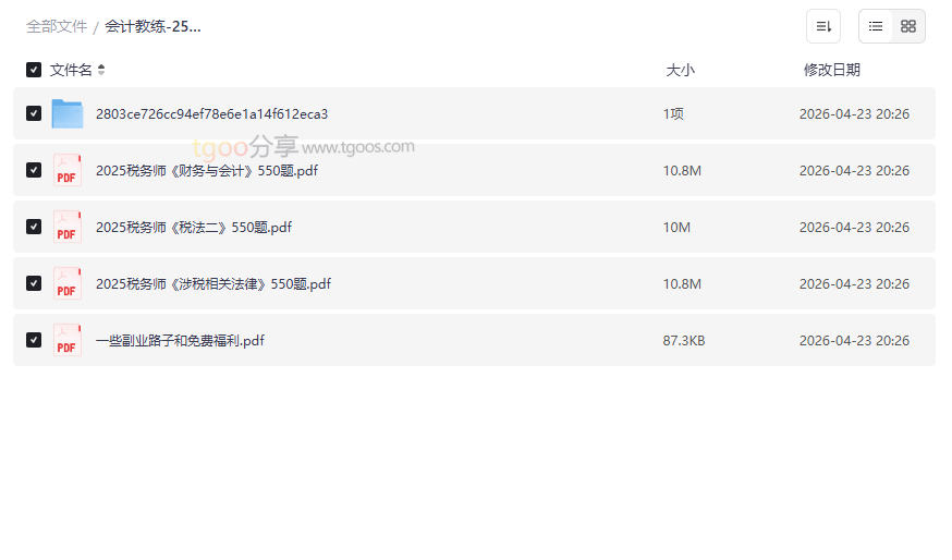 税务师考试是财会领域含金量极高的职业资格认证,尤其对于希望在税务、会计、审计领域深耕的从业者而言,是晋升和加薪的关键。本次分享的“会计教练-25税务师《550题》”资源,汇集了由知名会计培训机构“会计教练”精心编制的核心习题集,覆盖《财务与会计》、《税法二》和《涉税相关法律》三大核心科目。该资源以“高质量题库+系统化训练”为核心,直击考试重难点,特别适合: