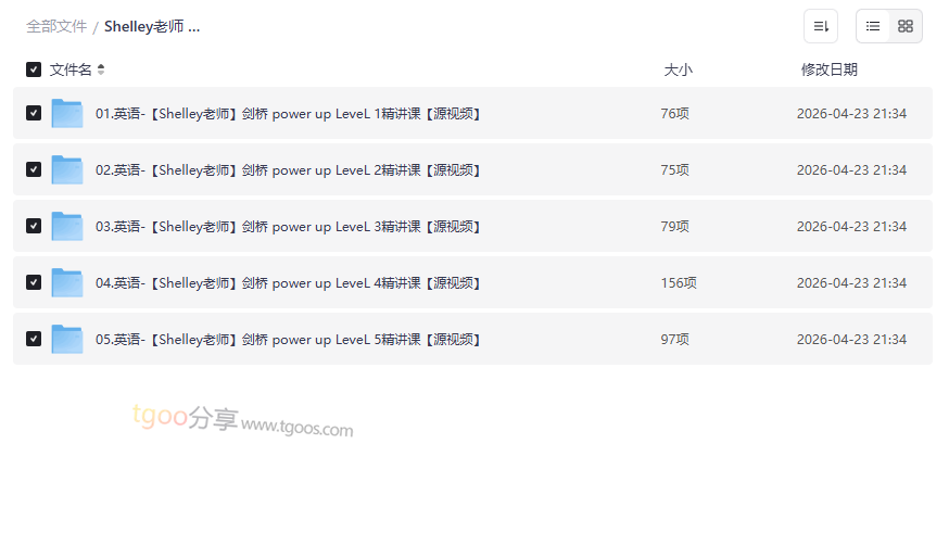 Shelley老师 剑桥Power Up L1~L5精讲课资源介绍