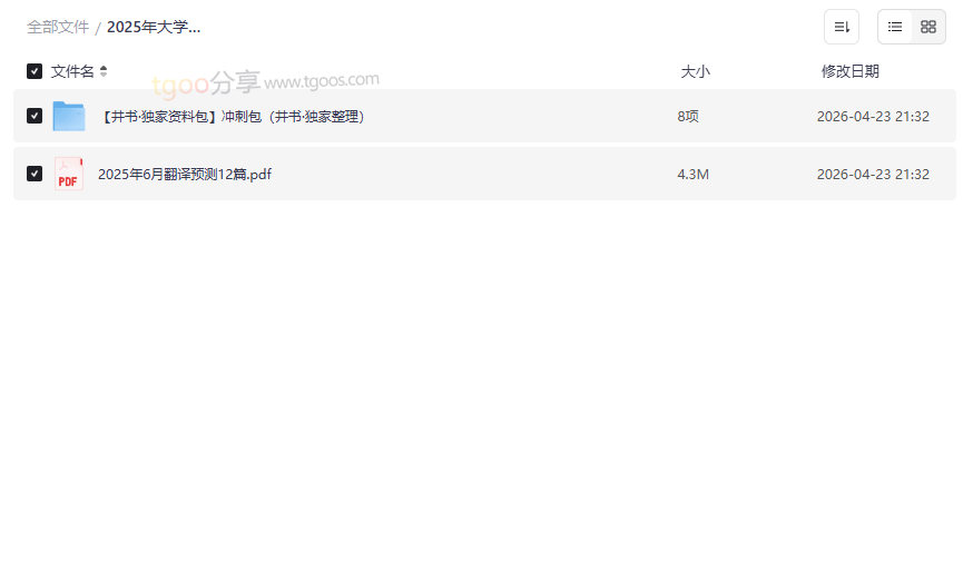 资源地址:2025年大学英语四六级井书独家资源包 免费网盘下载