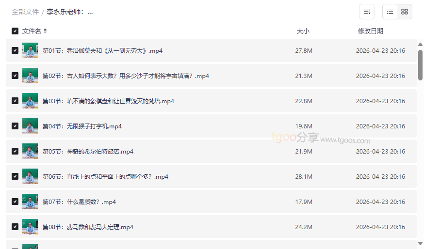 李永乐老师:《从一到无穷大》(完结)网盘资源介绍