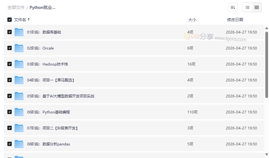 无论你是准备冲击Python开发岗、大数据开发岗,还是想要搭建自己的数据平台,这套高质量教程都能为你提供系统的、端到端的支持。