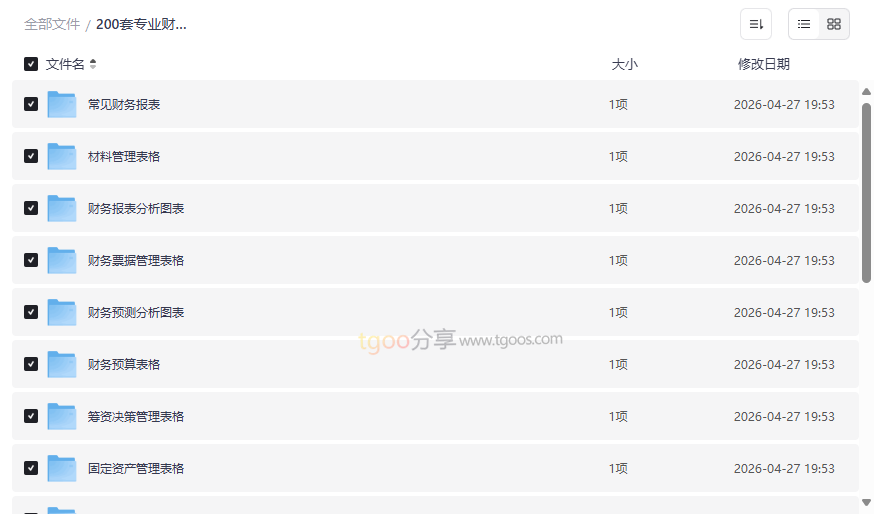 200套专业财务表格资源目录
